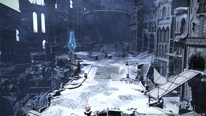 La taille de pierre : l’architecture ishgardaise a été profondément marquée par un millénaire de guerre contre les Dravaniens, et par la nécessité de construire des fortifications capables de résister aux attaques ennemies.