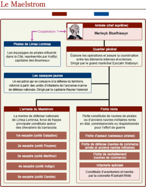 Décidée à fonder une Grande Compagnie pour résister à l’Empire garlemaldais, Merlwyb prit exemple sur l’Amiral Agatzahr et se proclama Amiral en chef du Maelstrom en 1572. Cette décision lui donna le pouvoir de commander tous les navires naviguant dans les eaux Limséennes – qu’ils soient pirates ou marchands – et mit en place une structure centralisée à travers laquelle elle pouvait mobiliser toute la puissance de Limsa Lominsa.[1]